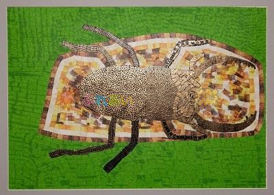 クワガタムシが好きで飼っていたことがあります。こんな金色でかっこいいクワガタがいたらいいなぁと思って作りました。金色の模様を分けていく作業が気が遠くなって途中嫌になりましたが、完成して良かったです。